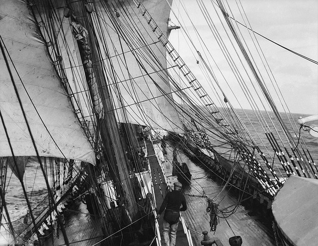 Villiers signed on as an able seaman in the Finnish four-master “Lawhill” owned by Gustaf Erikson.