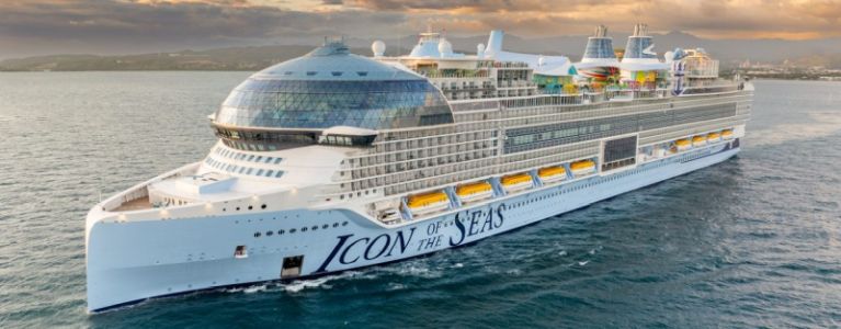 At 248,663 GT, almost 1,200′ long, with a maximum passenger capacity of 7,600 guests and 2,350 crew, the Icon of the Seas is currently the world’s largest cruise ship.